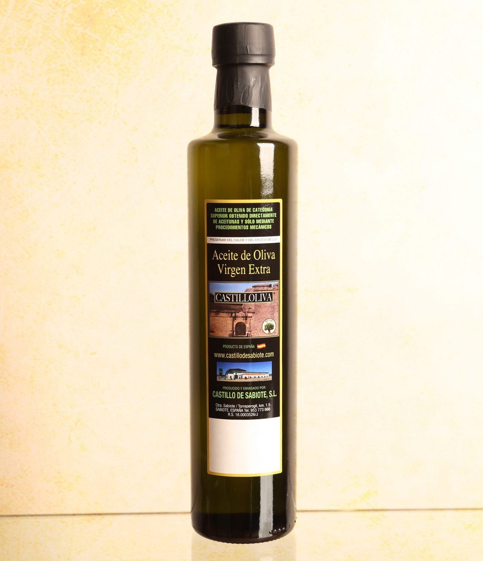 Aove Castilloliva Dórica cristal. Aceite de Oliva Virgen Extra de la variedad Picual, recolectado en la zona de los cerros de Úbeda y molturado en la almazara situada en la villa Medieval y Renacentista de Sabiote. Esta ubicación le otorga una personalidad bien definida, cuidados con mimo, nuestro campo nos ofrece un Aceite de Oliva Virgen Extra singular y característico.