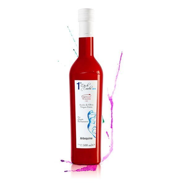 Castillo de Canena Primer Día Arbequina, es una edición muy especial, con una tirada limitada de aceite molturado con el fruto recolectado durante el primer día de cosecha. Cada año le imprime a la etiqueta su peculiar visión una personalidad de las artes, ciencias, sociedad … Esta edición la etiqueta ha sido diseñada por Juan Echanove. En la que ha querido plasmar los sentimientos del actor antes, durante y después de enfrentarse al proceso interpretativo sobre un escenario.